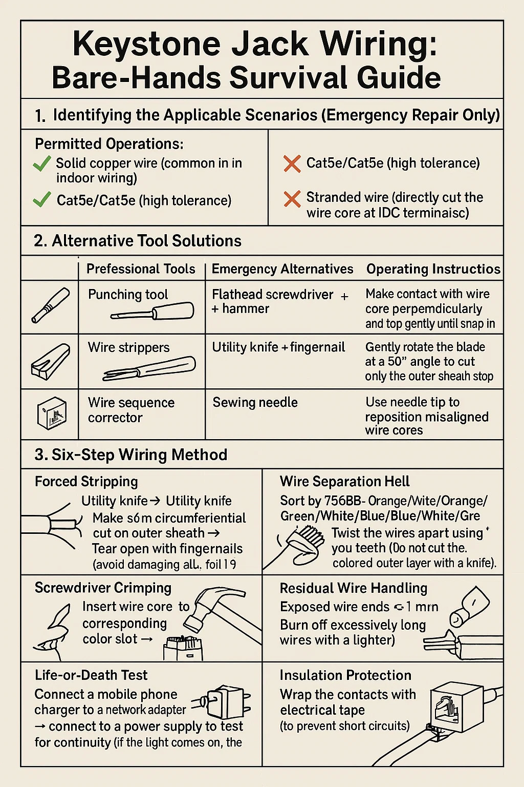 คีย์สโตน แจ็ค การเดินสายไฟ: คู่มือการเอาตัวรอดด้วยมือเปล่า